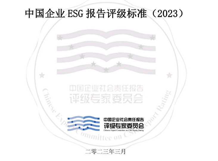 中国企业ESG报告评级标准(2023)由中国企业社会责任报告委员会牵头编制,于 2023年3月正式发布。
